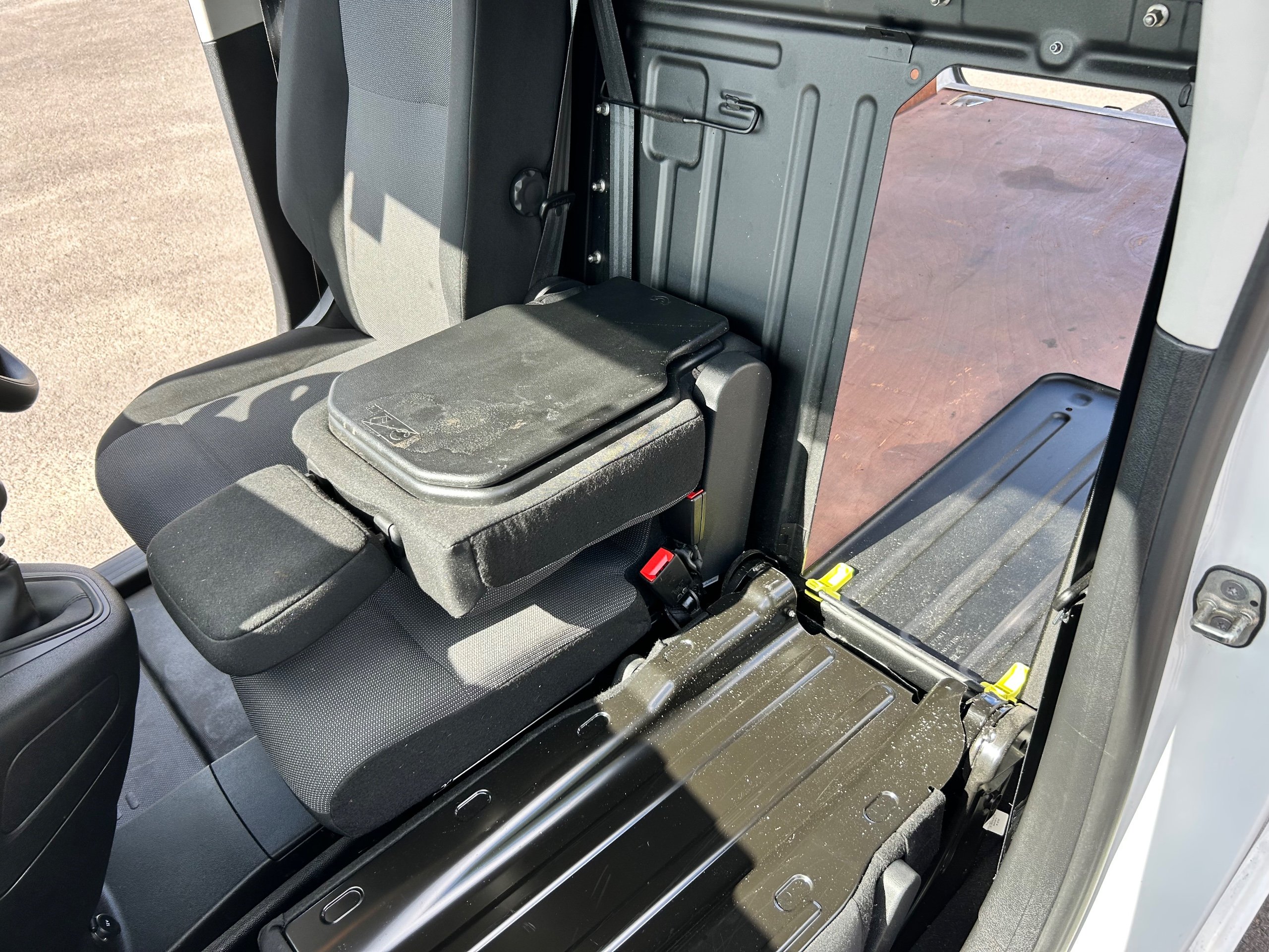 - EXTENSO Modular Folding Passenger Bench Seat with Pivoting Writing Table - Storage Under Central Seat - Load Through Hatch in Bulkhead and Load Protection Cover Compliant with ISO27956